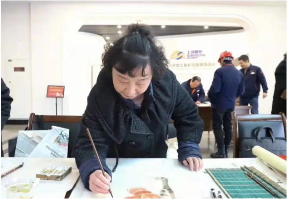 此次活動,公司邀請了來自市書法協(xié)會的書法老師們蒞臨現(xiàn)場,展示書法藝術(shù)精髓,弘揚中國特色的傳統(tǒng)民間文化?!按猴L(fēng)浩蕩展鴻圖、虎步奔騰開勝景”、“茶緣廣裕業(yè)有孚、新程奮進(jìn)正當(dāng)時”......老師們妙筆生花,一對對喜氣的虎年春聯(lián)、年畫,烘托出濃濃年味;一句句美好的祝福,伴著墨香暖人心扉。上洋家人們趁工作休息間隙紛紛前來挑選心儀的虎年春聯(lián)、年畫,與老師們合影留念,現(xiàn)場一片溫馨祥和的喜慶氣氛。